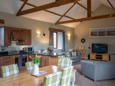 With breath taking panoramic views south towards the Lake District and west over the reservoir to the Solway Firth and Scottish fells, the cottage has its own enclosed garden with a private deck and a hot tub. The cottage is full of character with original beams and spacious open plan living area.